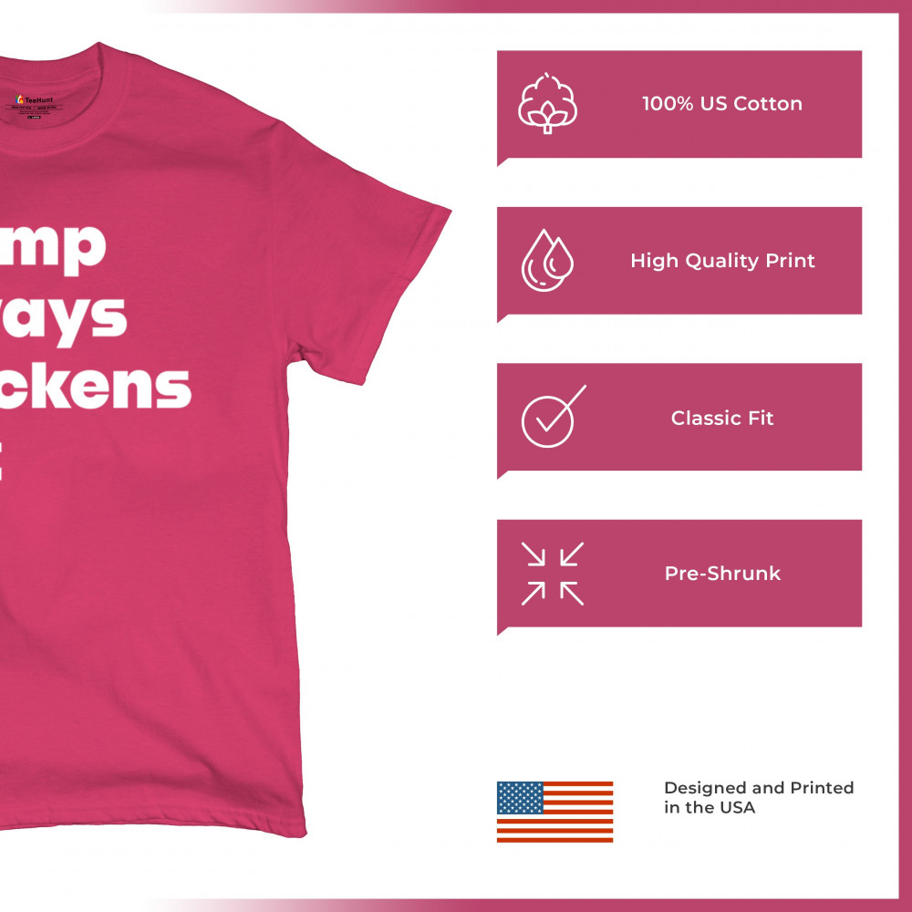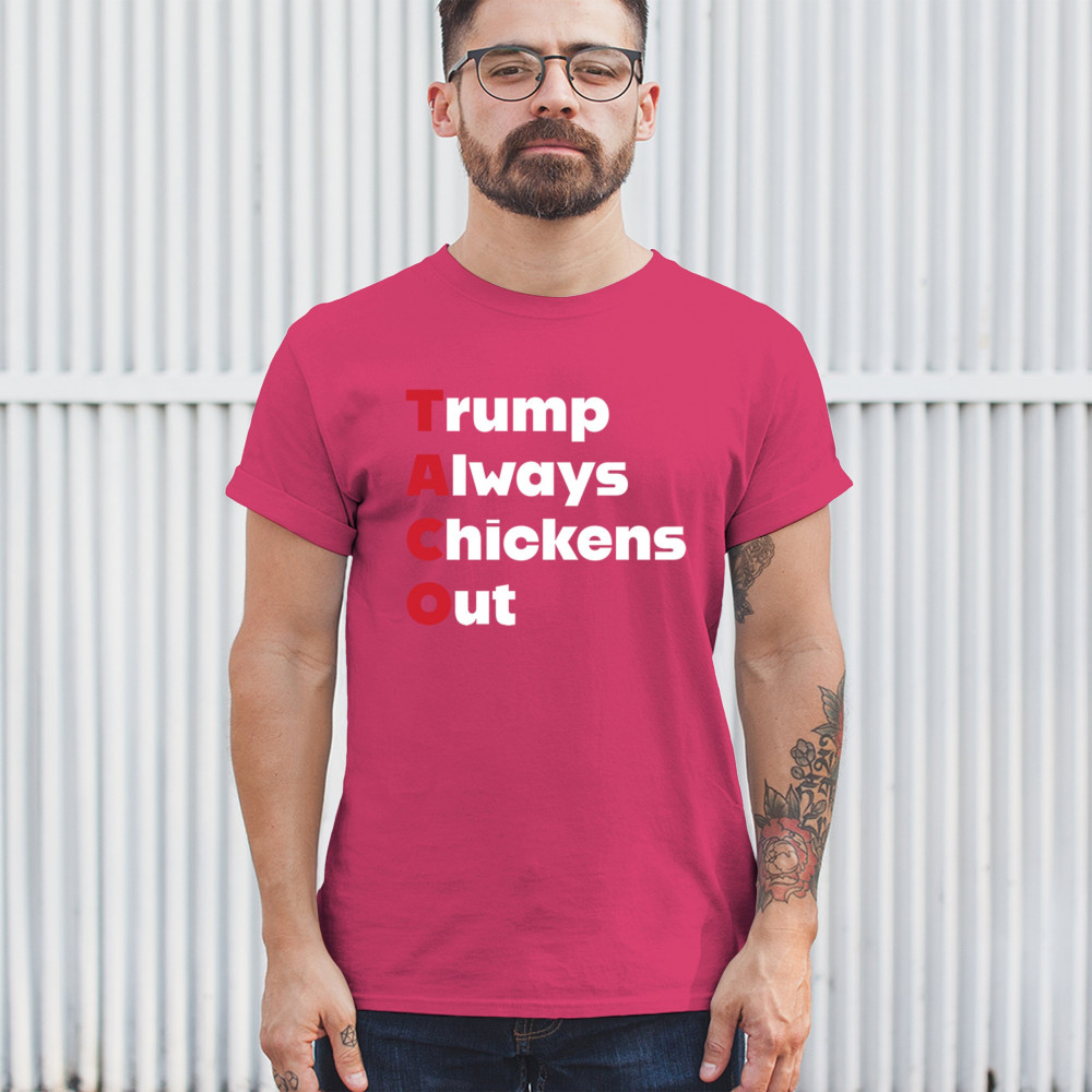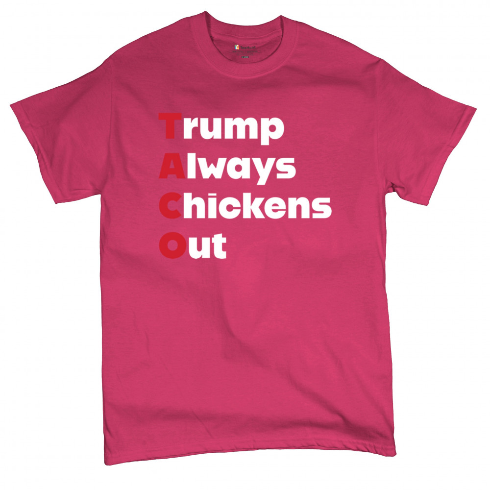 Trump Always Chickens Out is bold protest fashion for anti-dictator activists, political satire fans, and no kings supporters.