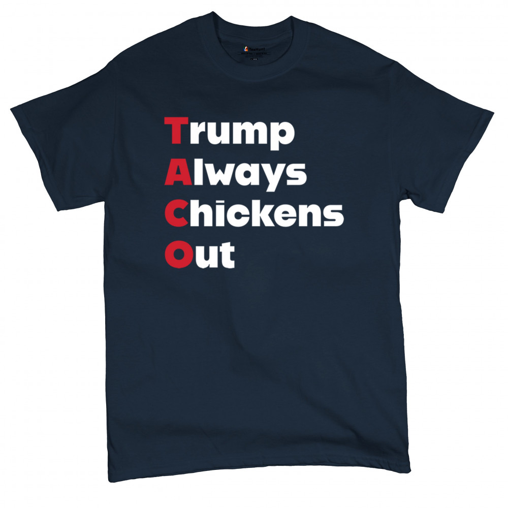 Trump Always Chickens Out is bold protest fashion for anti-dictator activists, political satire fans, and no kings supporters.