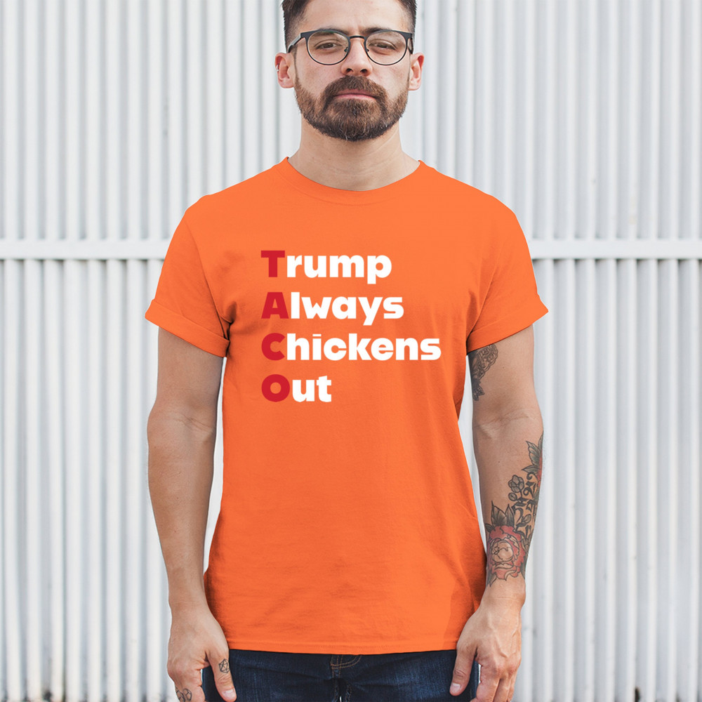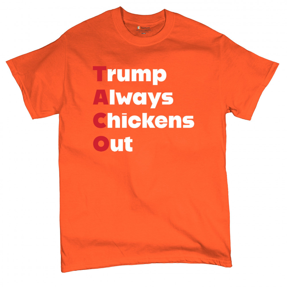 Trump Always Chickens Out is bold protest fashion for anti-dictator activists, political satire fans, and no kings supporters.