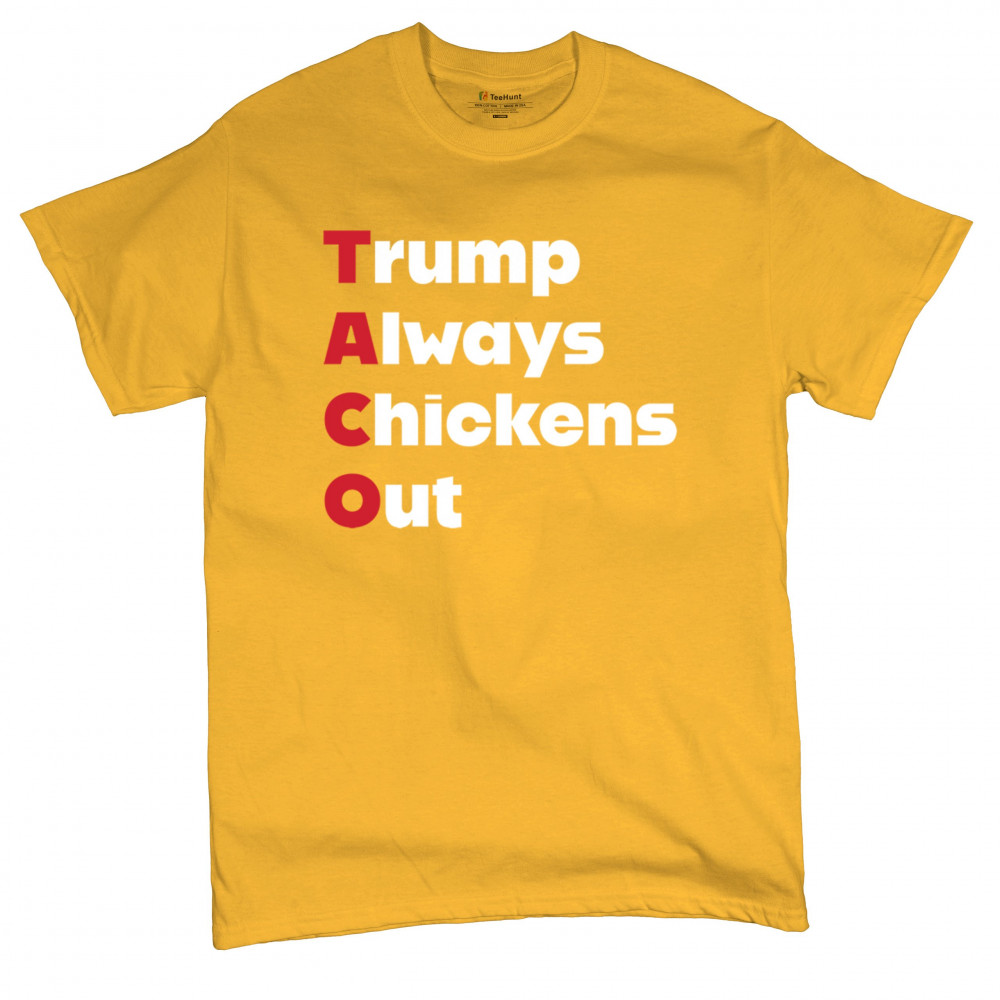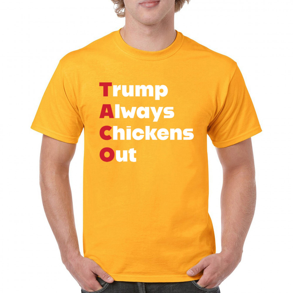 Trump Always Chickens Out is bold protest fashion for anti-dictator activists, political satire fans, and no kings supporters.