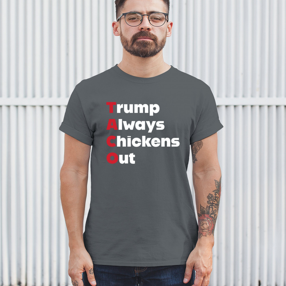 Trump Always Chickens Out is bold protest fashion for anti-dictator activists, political satire fans, and no kings supporters.