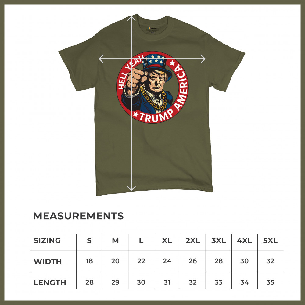 Express your patriotism with the "Hell Yeah Trump America" design. Ideal for rallies or daily wear, this design represents unwavering support for Donald Trump and conservative values. Stand strong with an image that embodies victory, trust in God, and a commitment to the America First ideology. Make a bold statement that resonates with fellow patriots who believe in limited government and never surrender.