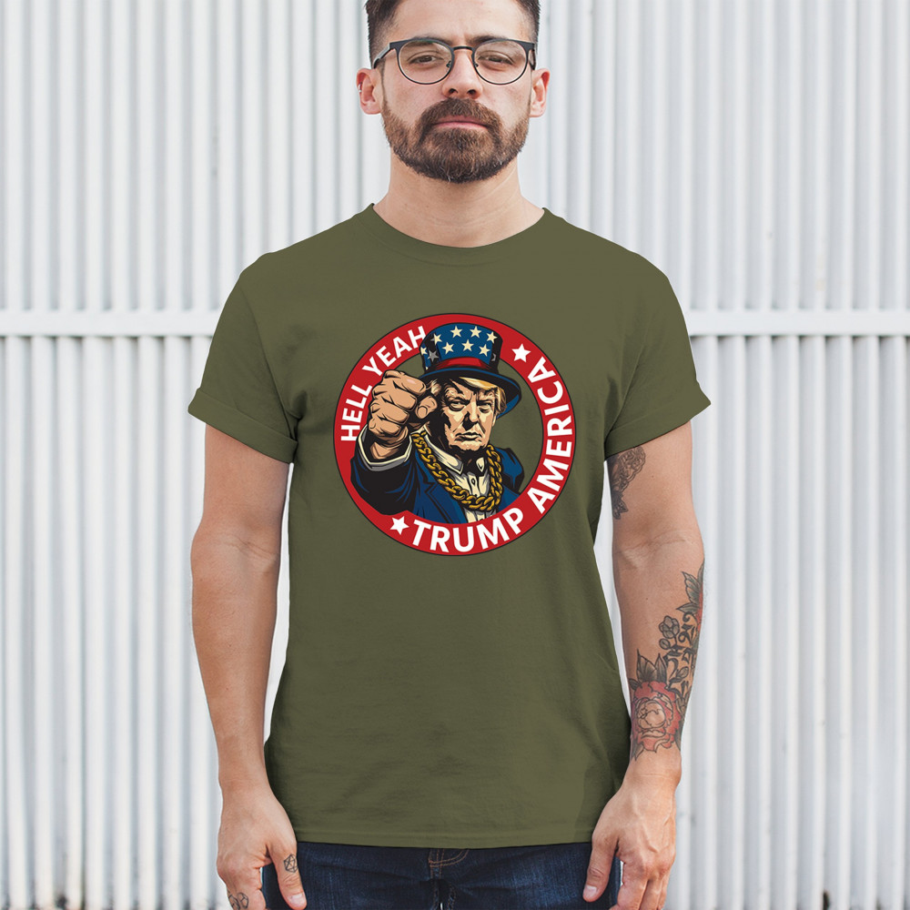 Support Donald Trump with the "Hell Yeah Trump America" design, representing conservative values, strength, and patriotism.