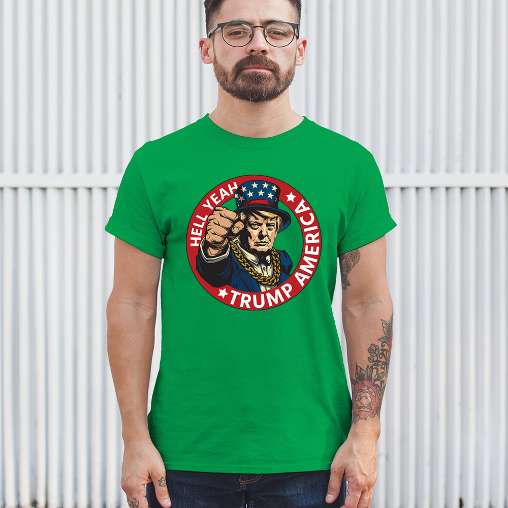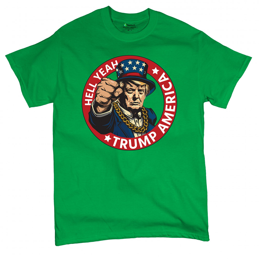 Support Donald Trump with the "Hell Yeah Trump America" design, representing conservative values, strength, and patriotism.