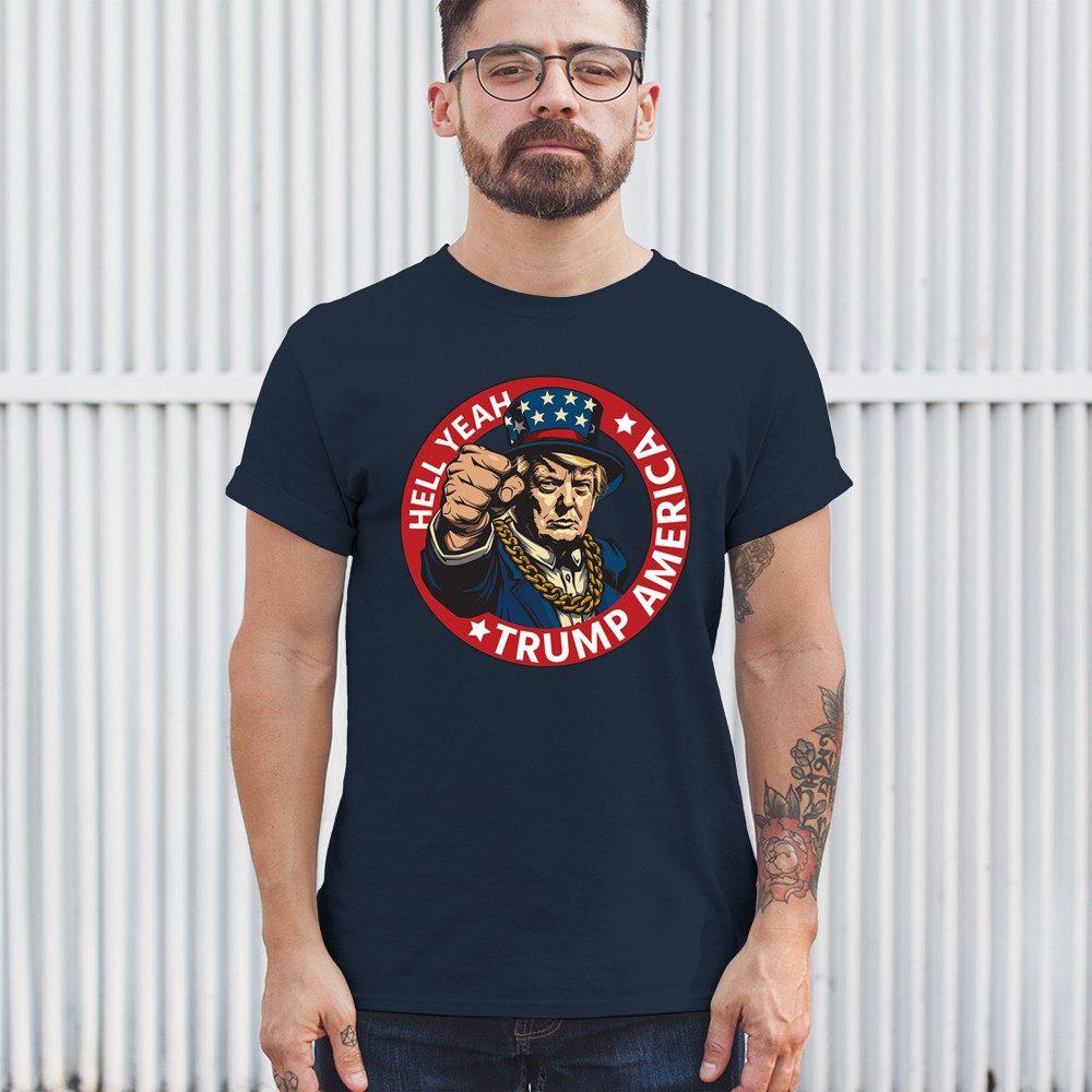 Support Donald Trump with the "Hell Yeah Trump America" design, representing conservative values, strength, and patriotism.