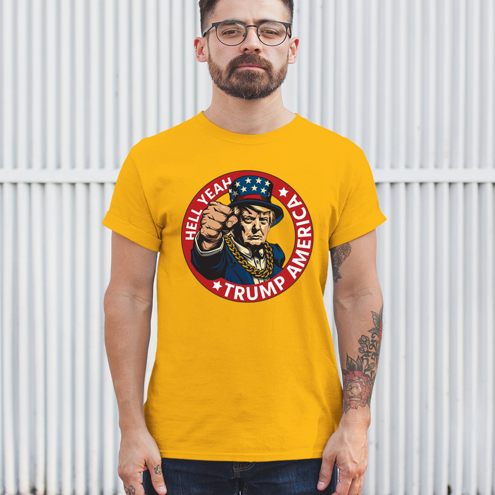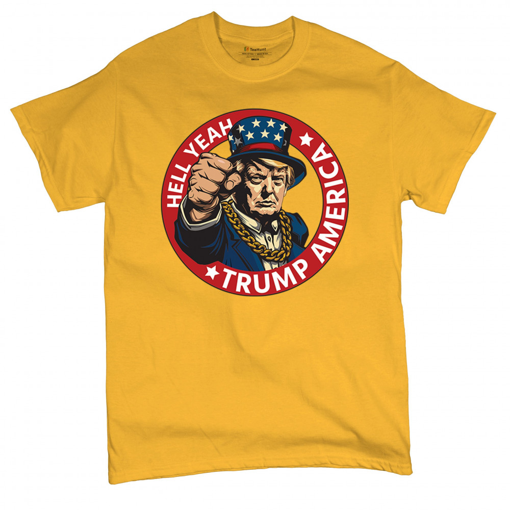 Support Donald Trump with the "Hell Yeah Trump America" design, representing conservative values, strength, and patriotism.