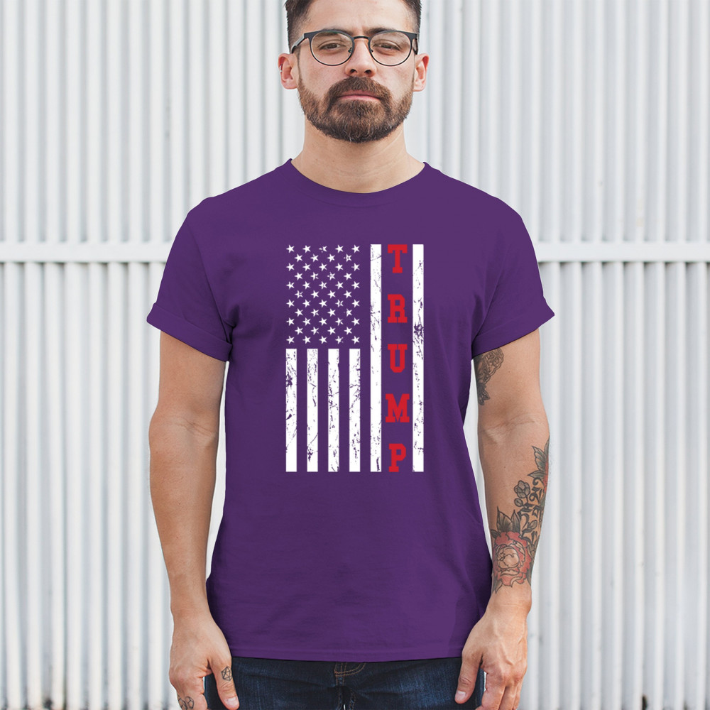Declare your allegiance to Donald Trump and the Republican cause with our Trump 2024 Flag tee. Featuring a striking American Flag backdrop and 'Trump 2024' emblazoned proudly, this shirt embodies the spirit of Make America Great Again. Send a clear messag