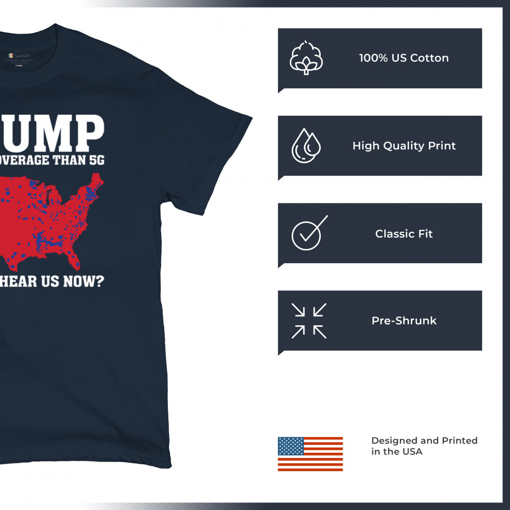 "Trump: Better Coverage Than 5G" design celebrates Republican victory and America First values. Perfect for rallies, events, or gifting patriots.