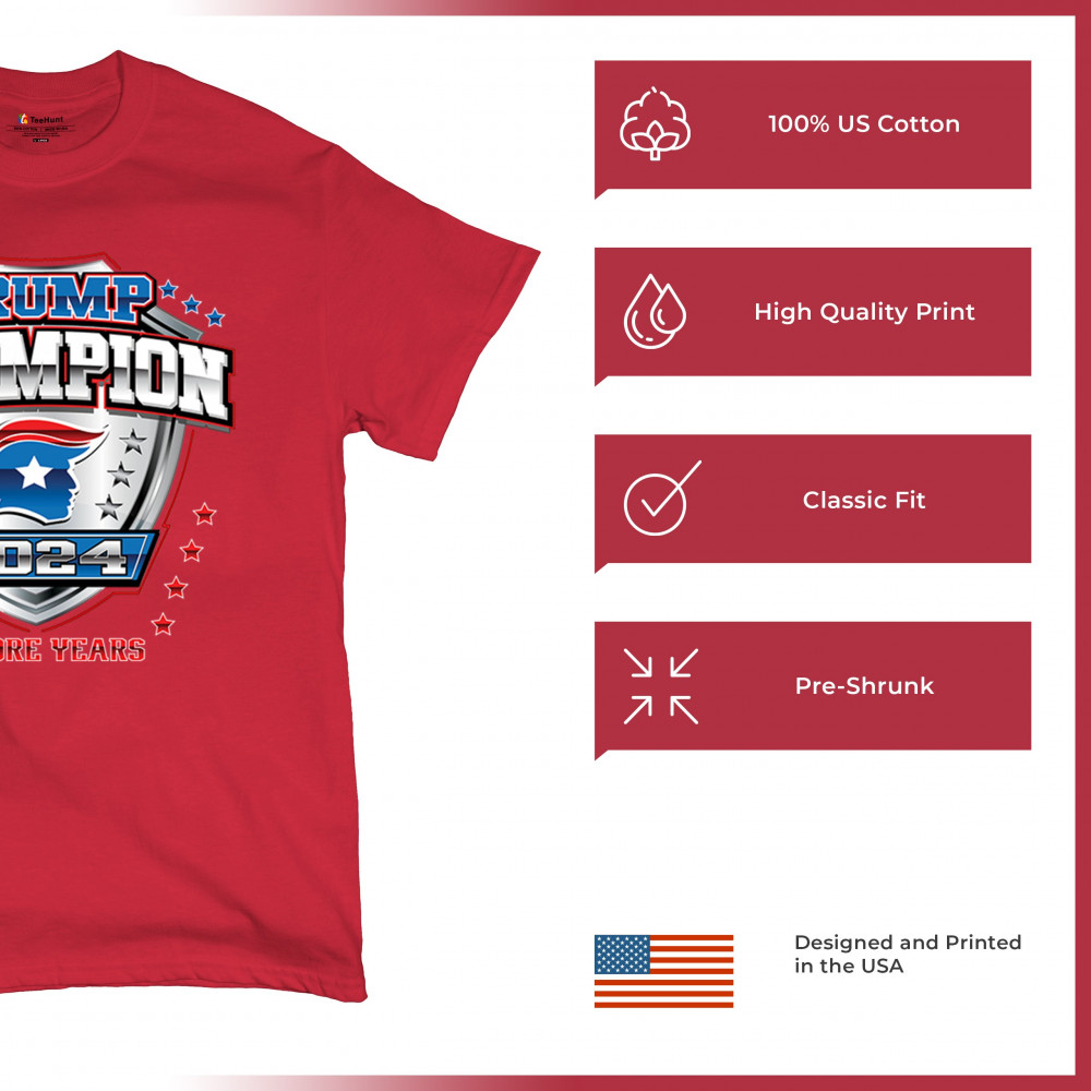 Celebrate Trump’s return with the "Trump Champion 2024" design. Perfect for patriots, conservatives, and those supporting 4 More Years of victory!