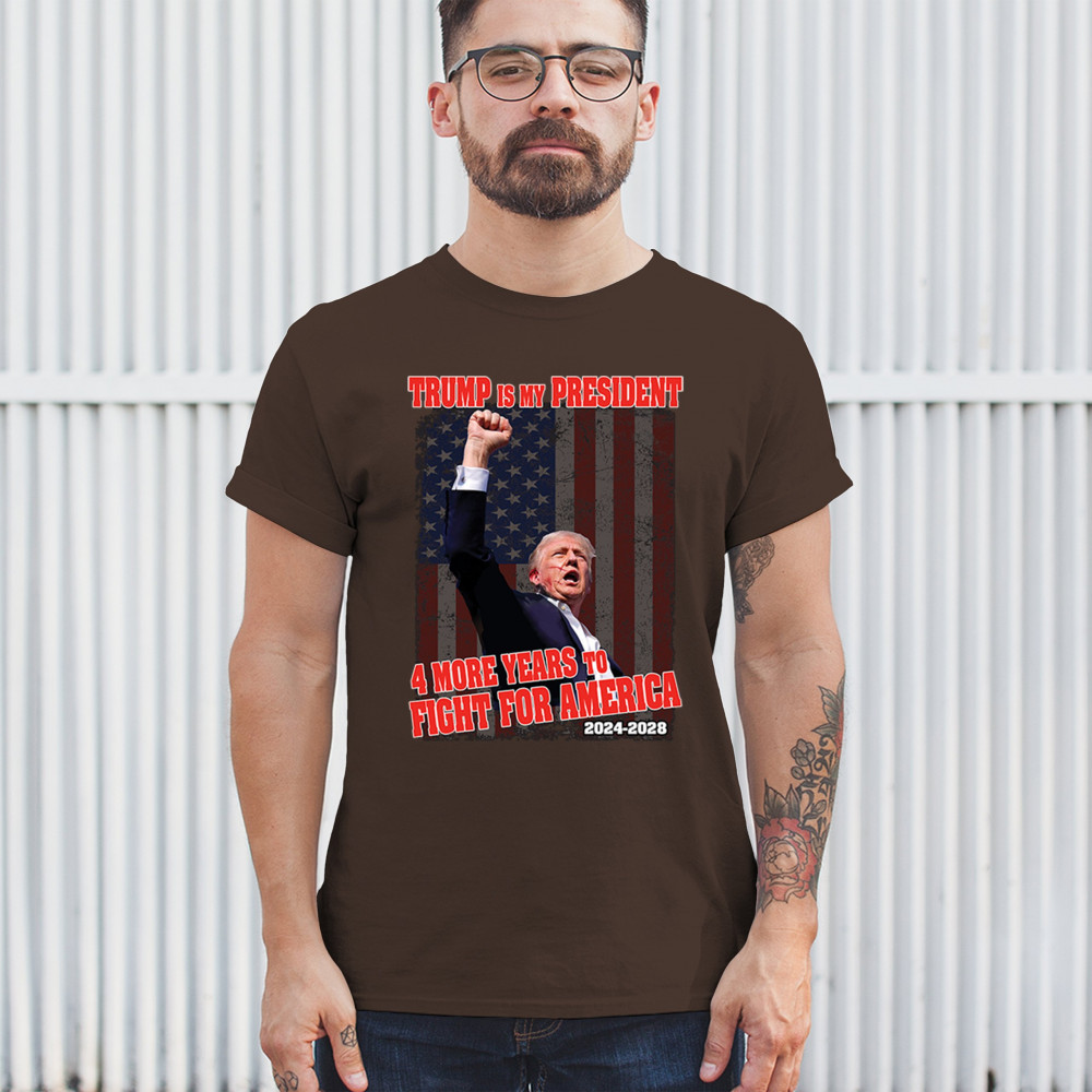 Show your support for Trump with the "4 More Years to Fight for America" design. Perfect for patriots, conservatives, and America First advocates.