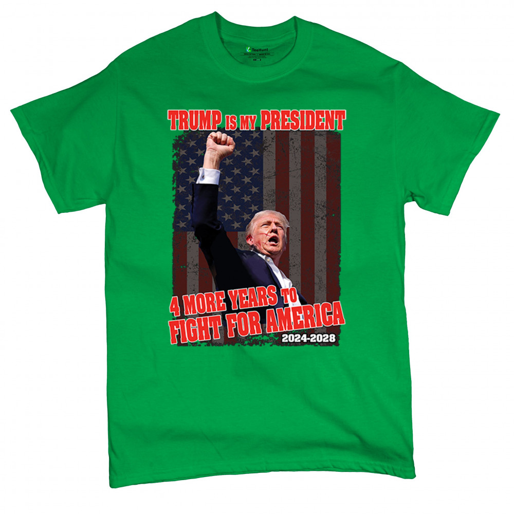 Show your support for Trump with the "4 More Years to Fight for America" design. Perfect for patriots, conservatives, and America First advocates.