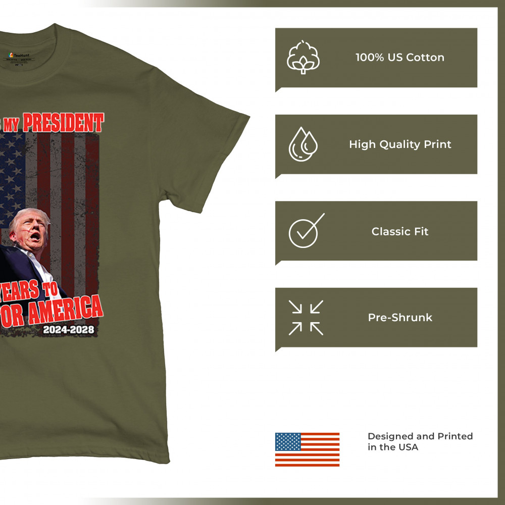 Celebrate the unwavering commitment to American values with this "Trump is My President" design, representing the fight for a prosperous nation from 2024-2028. Ideal for proud Republicans, conservatives, and America First supporters, this design embodies the spirit of victory, patriotism, and resilience. Embrace the Red Wave, honor the American flag, and let everyone know you stand strong for Donald J. Trump as the 47th President.