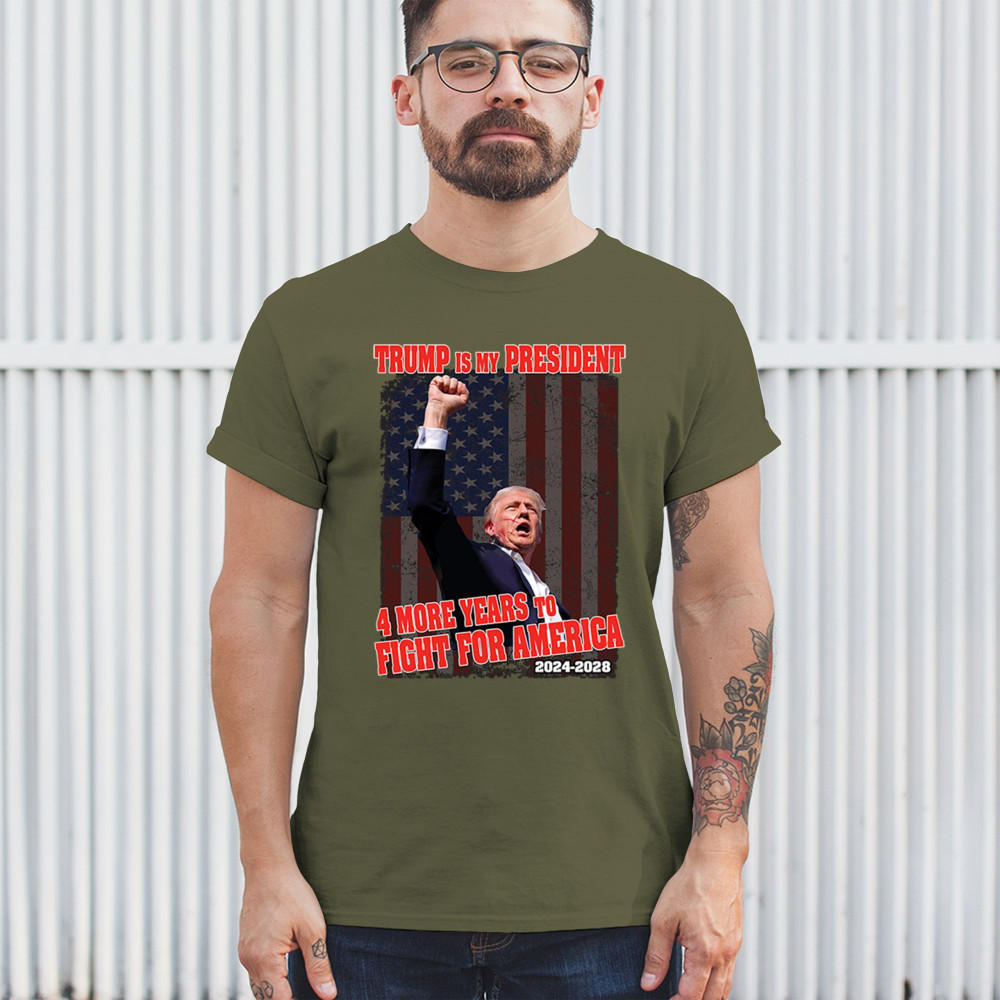 Show your support for Trump with the "4 More Years to Fight for America" design. Perfect for patriots, conservatives, and America First advocates.