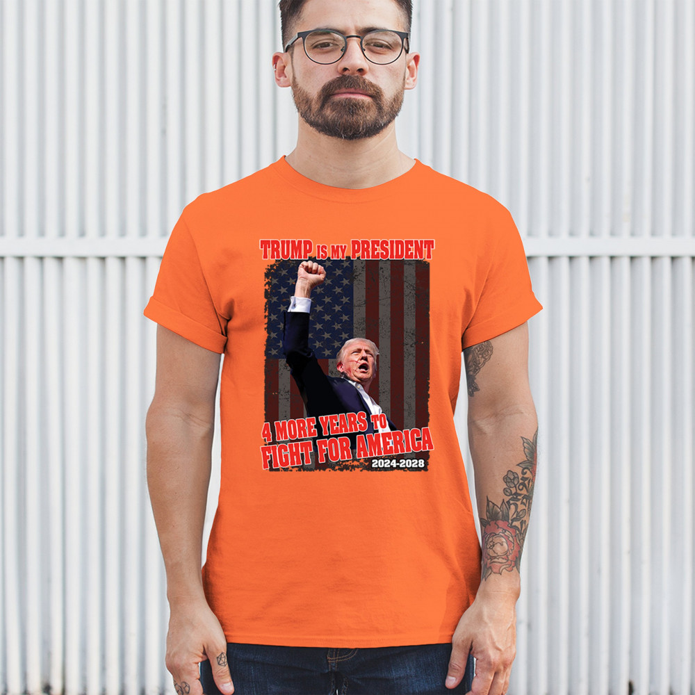 Show your support for Trump with the "4 More Years to Fight for America" design. Perfect for patriots, conservatives, and America First advocates.