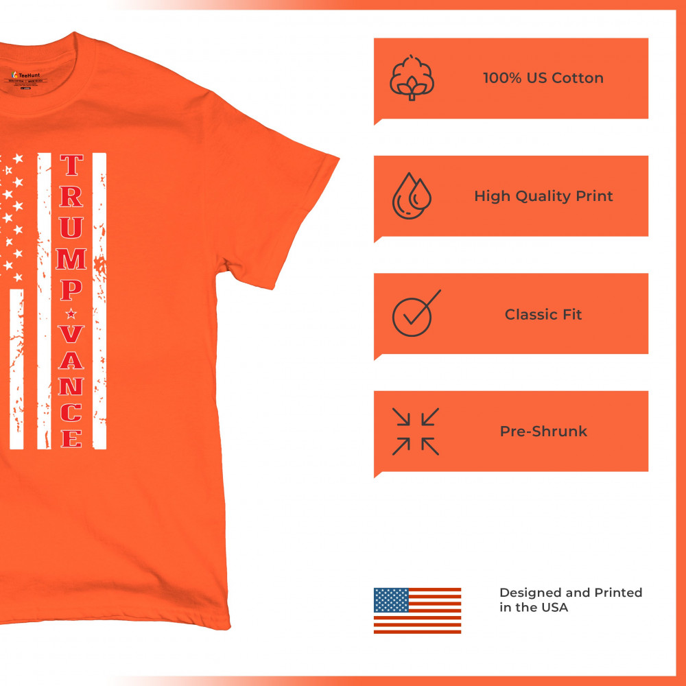 Show your support for Trump Vance 2024 with a bold, rustic American flag design. Perfect for rallies and daily wear. Patriotic and durable.