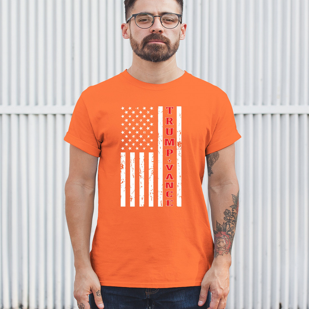 Support the Trump Vance 2024 campaign in style with this bold design featuring a rustic American flag and strong typography. Perfect for political rallies, events, or casual wear, this design is made from premium materials to ensure both comfort and durability. Whether you're attending a rally or just showing your support in daily life, this piece helps you make a powerful statement. It's also an excellent gift idea for fellow conservatives and Trump supporters who want to express their patriotic pride.
