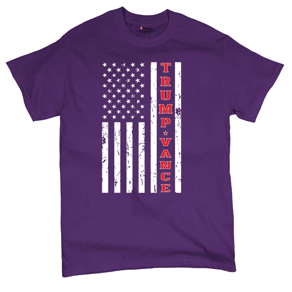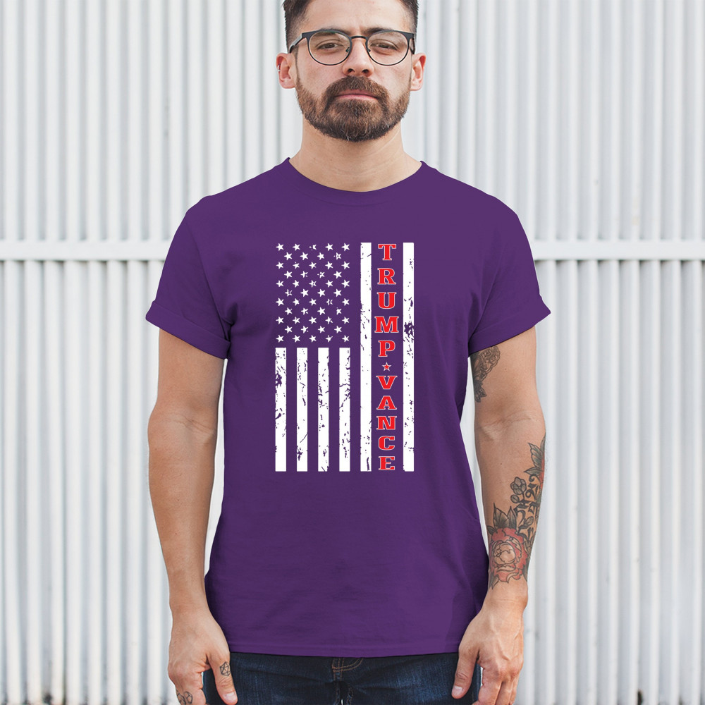 Show your support for Trump Vance 2024 with a bold, rustic American flag design. Perfect for rallies and daily wear. Patriotic and durable.