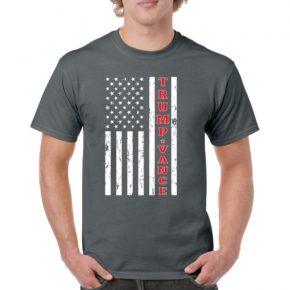 Show your support for Trump Vance 2024 with a bold, rustic American flag design. Perfect for rallies and daily wear. Patriotic and durable.