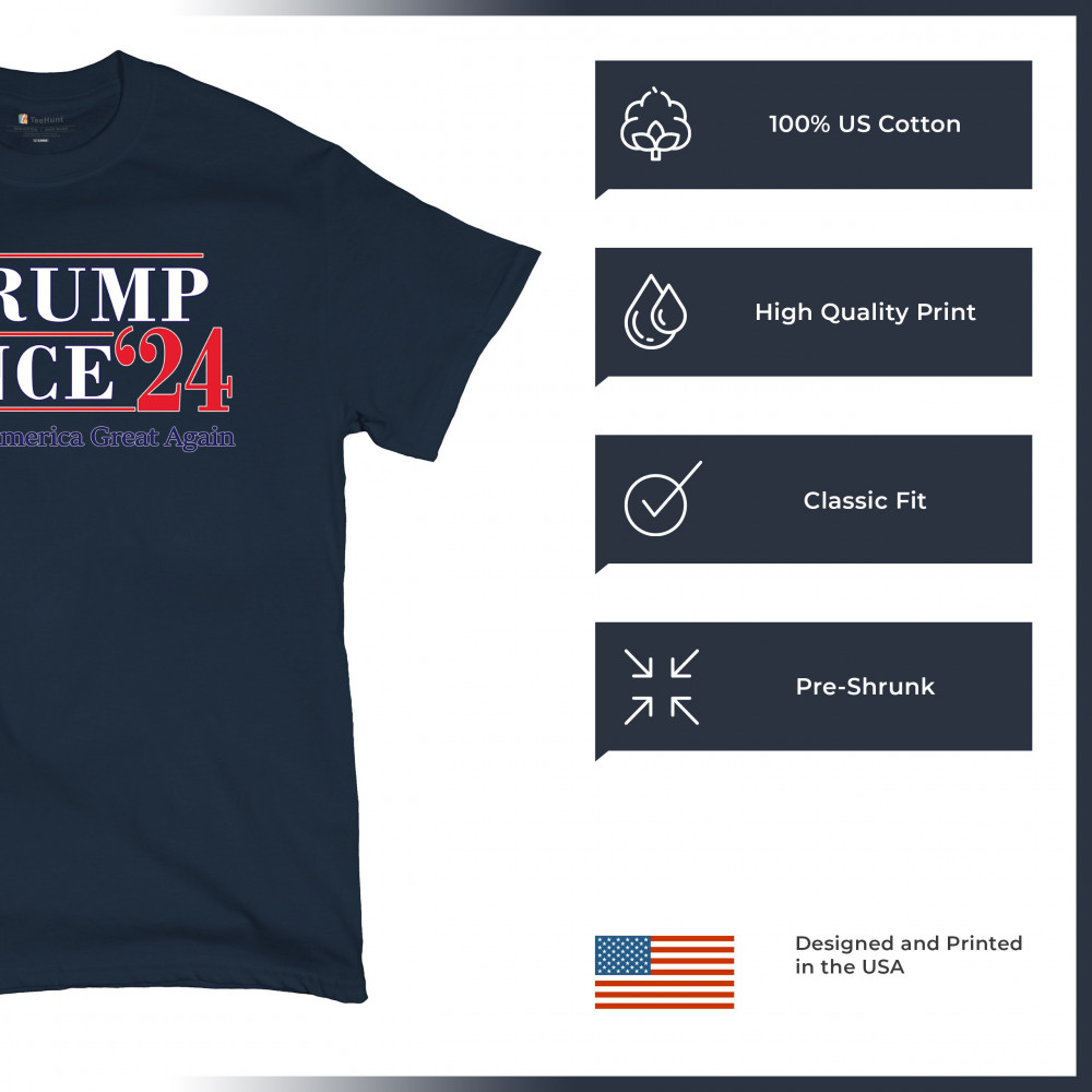 Show your support for Trump and Vance with our bold 2024 design. Perfect for rallies, events, and daily wear. Stand out with patriotic pride.