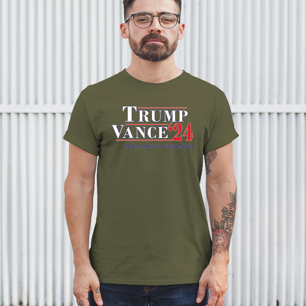 Show your support for Trump and Vance with our bold 2024 design. Perfect for rallies, events, and daily wear. Stand out with patriotic pride.