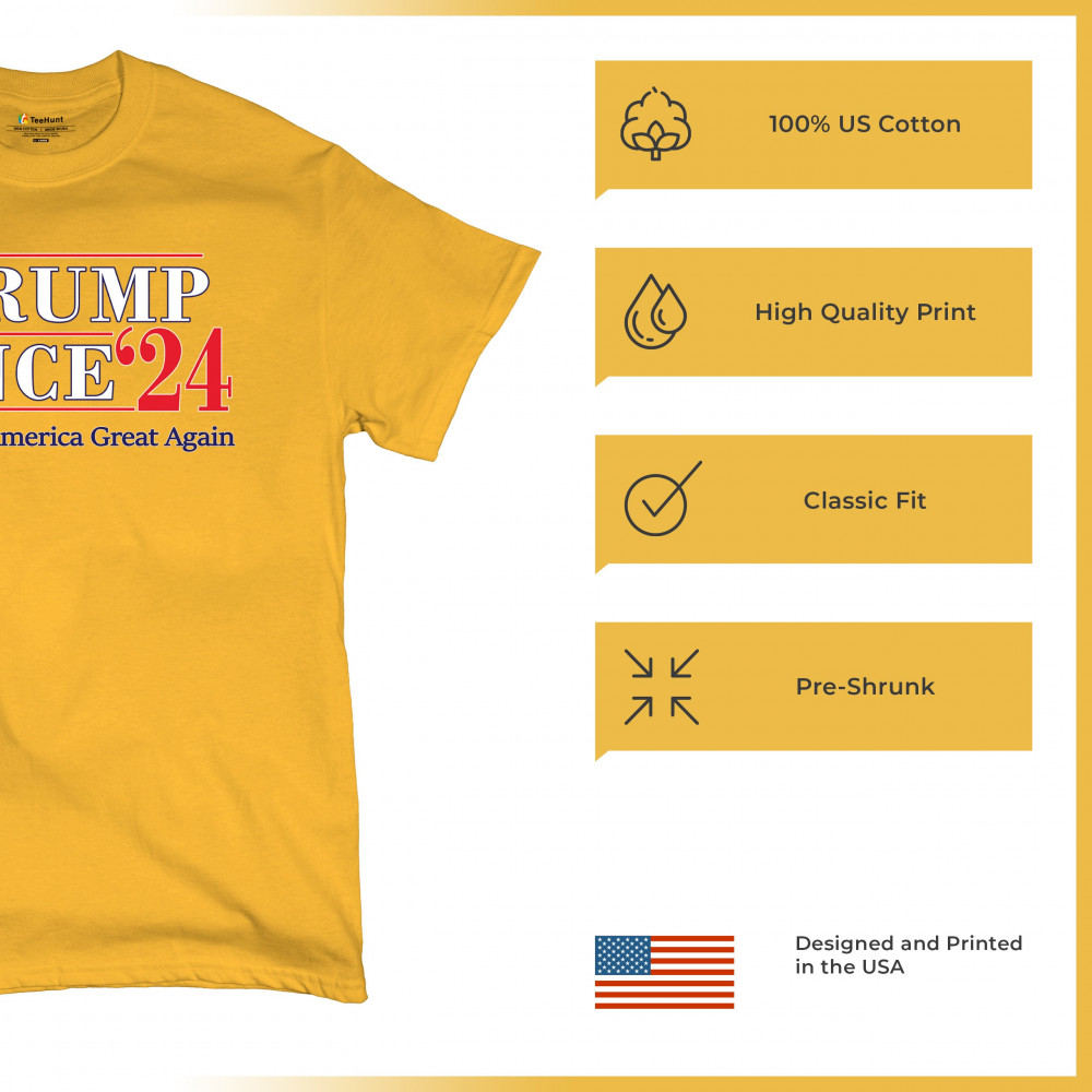 Show your support for Trump and Vance with our bold 2024 design. Perfect for rallies, events, and daily wear. Stand out with patriotic pride.