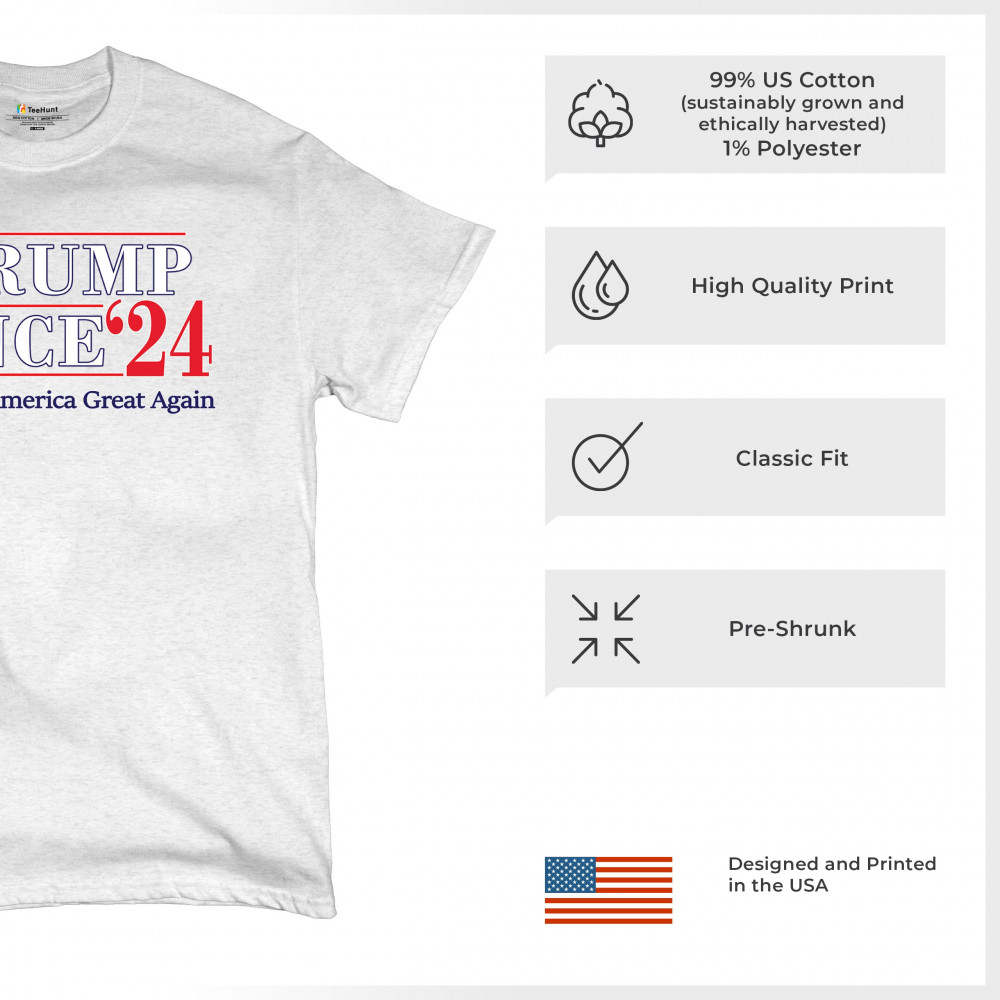 Show your support for Trump and Vance with our bold 2024 design. Perfect for rallies, events, and daily wear. Stand out with patriotic pride.