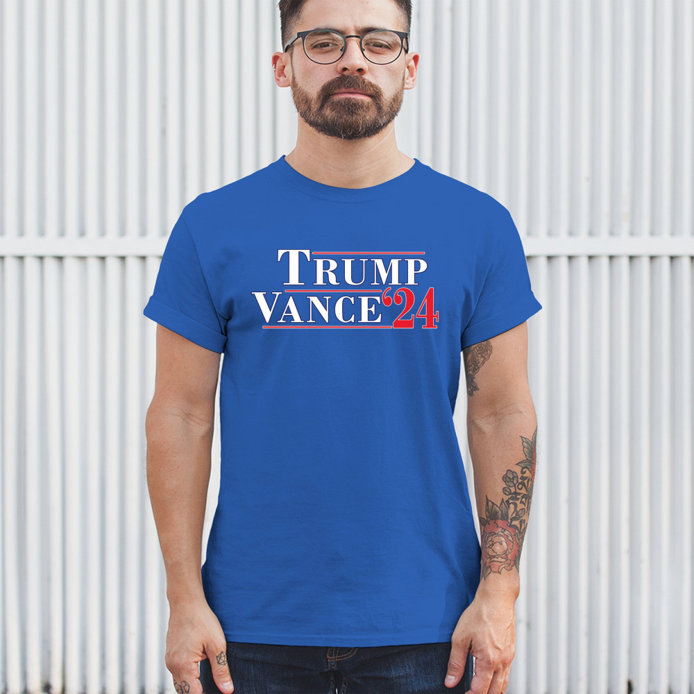 Embrace the spirit of patriotism and support the Trump Vance 2024 campaign with this eye-catching design. The bold red, white, and blue colors combined with a striking flag background make this design perfect for rallies, conservative events, and everyday wear. Crafted with high-quality materials, this design ensures both durability and style. Show your unwavering support and pride for America with the Trump Vance 2024 design. Whether at a rally or in daily life, stand out and make a statement with this unique piece.