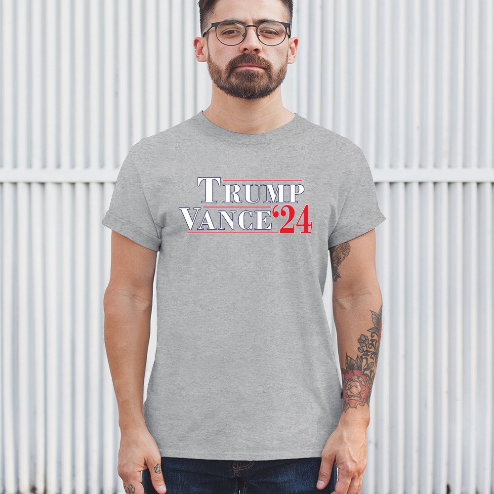 Embrace the spirit of patriotism and support the Trump Vance 2024 campaign with this eye-catching design. The bold red, white, and blue colors combined with a striking flag background make this design perfect for rallies, conservative events, and everyday wear. Crafted with high-quality materials, this design ensures both durability and style. Show your unwavering support and pride for America with the Trump Vance 2024 design. Whether at a rally or in daily life, stand out and make a statement with this unique piece.