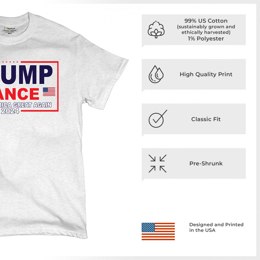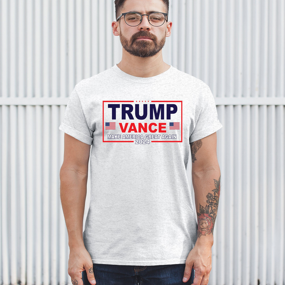 Express your support for the Trump-Vance 2024 campaign with this bold and patriotic design. Highlighting the American flag and the impactful "Make America Great Again" slogan, this design is ideal for those who stand by conservative values. Perfect for attending rallies, political events, or as an everyday statement piece, it symbolizes victory, resilience, and the indomitable American spirit. Show your dedication to the cause and rally fellow supporters with this unique and powerful design. Wear it with pride and make a statement wherever you go.