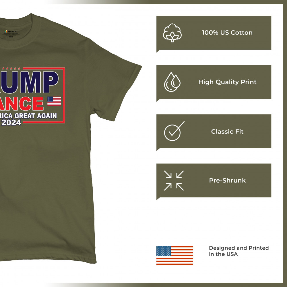 Express your support for the Trump-Vance 2024 campaign with this bold and patriotic design. Highlighting the American flag and the impactful "Make America Great Again" slogan, this design is ideal for those who stand by conservative values. Perfect for attending rallies, political events, or as an everyday statement piece, it symbolizes victory, resilience, and the indomitable American spirit. Show your dedication to the cause and rally fellow supporters with this unique and powerful design. Wear it with pride and make a statement wherever you go.