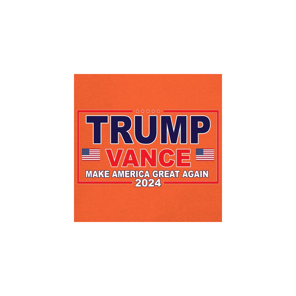 Showcase your support for the Trump-Vance 2024 campaign with this bold patriotic design featuring the American flag and "Make America Great Again" slogan.