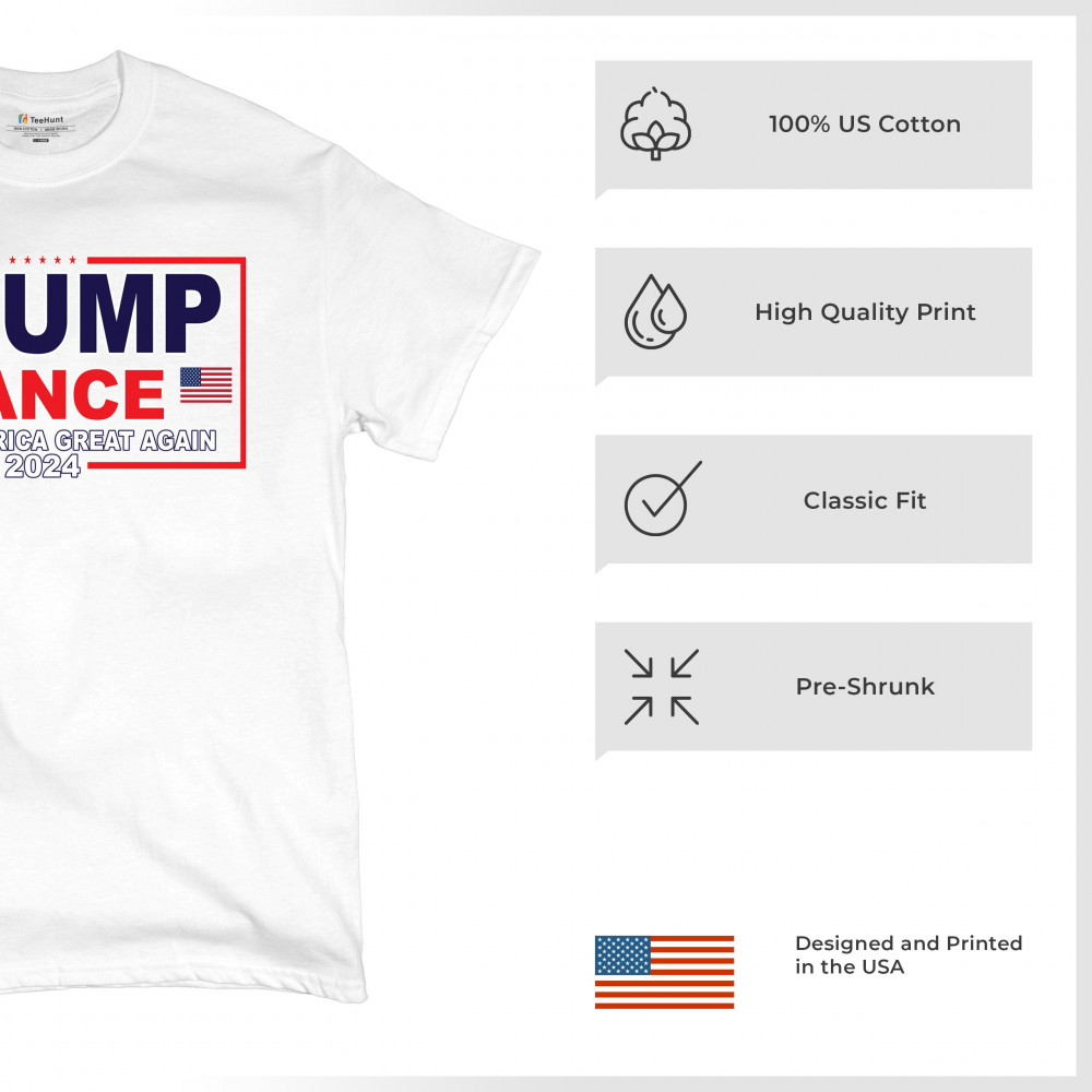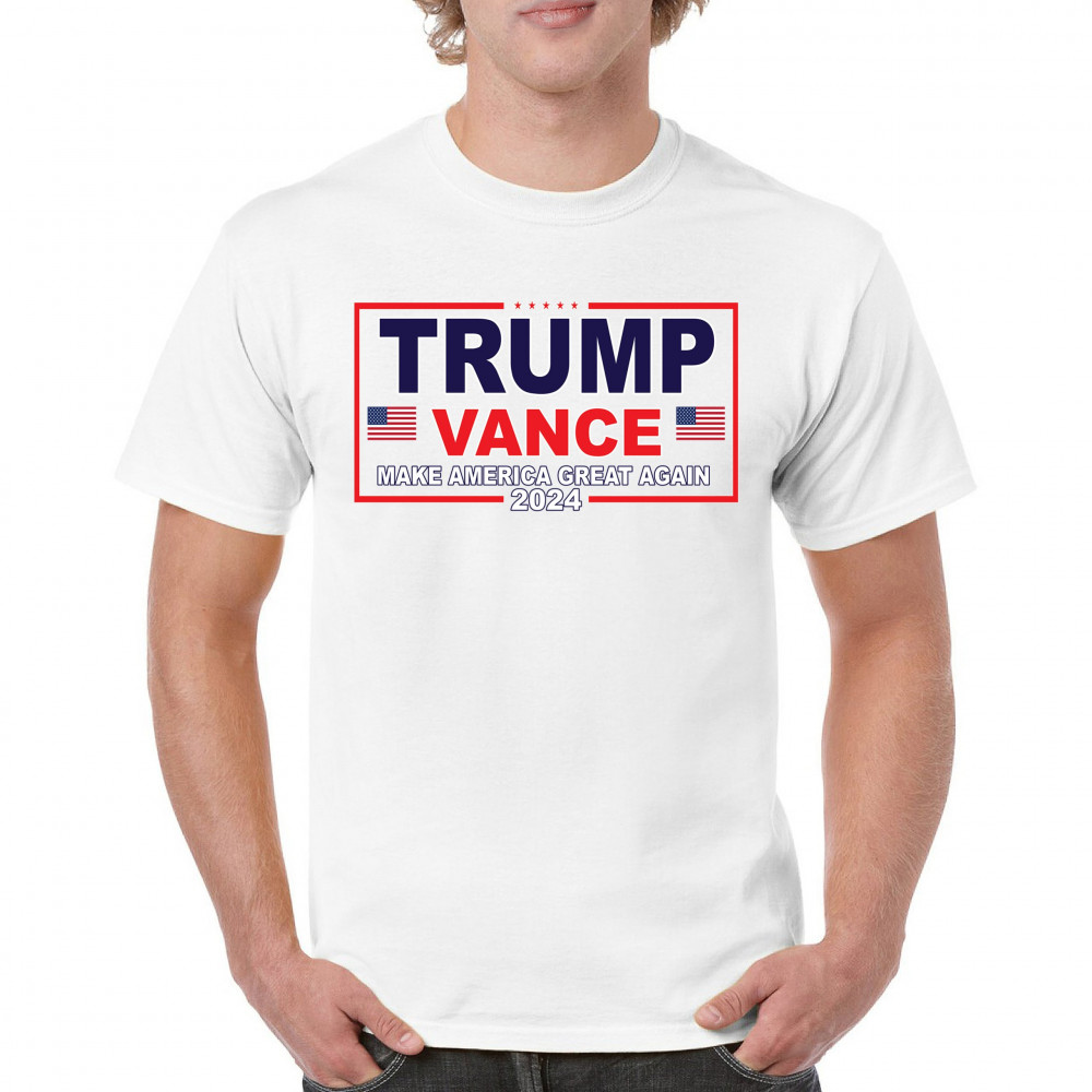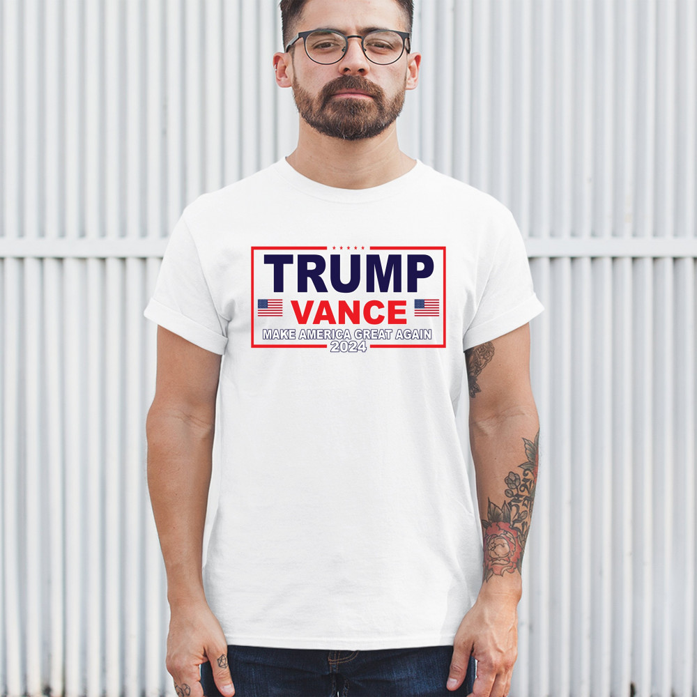 Express your support for the Trump-Vance 2024 campaign with this bold and patriotic design. Highlighting the American flag and the impactful "Make America Great Again" slogan, this design is ideal for those who stand by conservative values. Perfect for attending rallies, political events, or as an everyday statement piece, it symbolizes victory, resilience, and the indomitable American spirit. Show your dedication to the cause and rally fellow supporters with this unique and powerful design. Wear it with pride and make a statement wherever you go.