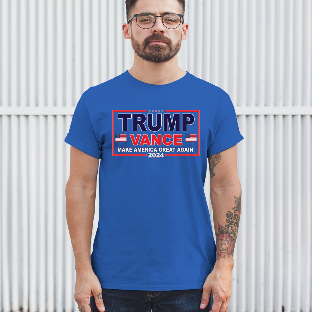 Express your support for the Trump-Vance 2024 campaign with this bold and patriotic design. Highlighting the American flag and the impactful "Make America Great Again" slogan, this design is ideal for those who stand by conservative values. Perfect for attending rallies, political events, or as an everyday statement piece, it symbolizes victory, resilience, and the indomitable American spirit. Show your dedication to the cause and rally fellow supporters with this unique and powerful design. Wear it with pride and make a statement wherever you go.