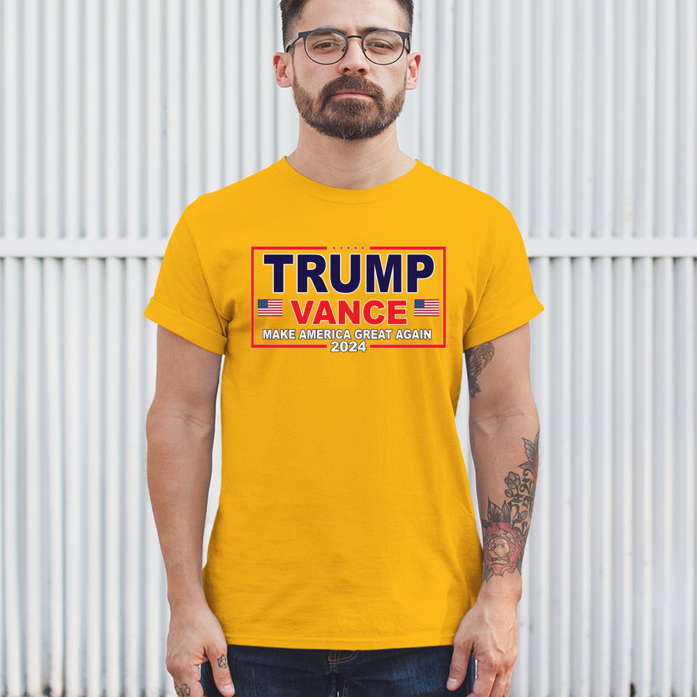 Express your support for the Trump-Vance 2024 campaign with this bold and patriotic design. Highlighting the American flag and the impactful "Make America Great Again" slogan, this design is ideal for those who stand by conservative values. Perfect for attending rallies, political events, or as an everyday statement piece, it symbolizes victory, resilience, and the indomitable American spirit. Show your dedication to the cause and rally fellow supporters with this unique and powerful design. Wear it with pride and make a statement wherever you go.