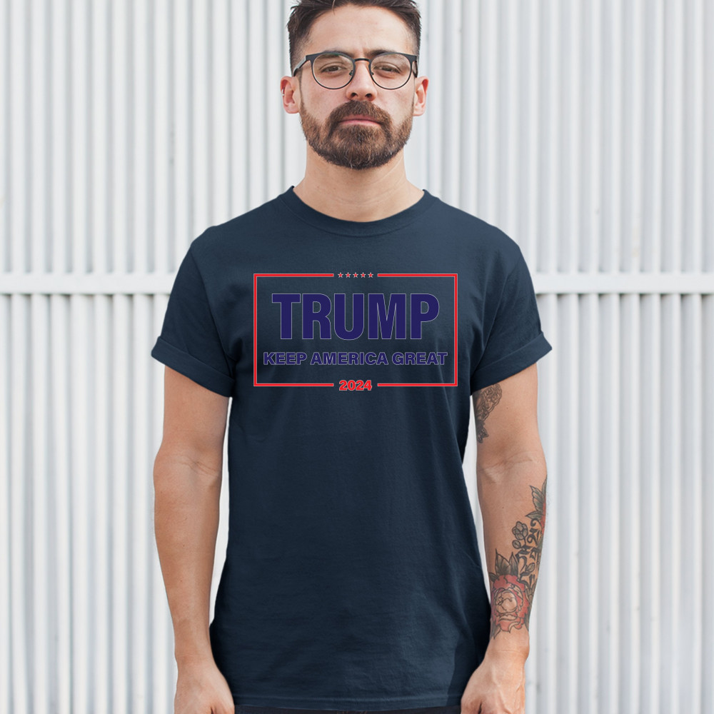 A political print saying "Trump Keep America Great 2024". A great choice to wear for a Trump rally or give as a gift to a Donald Trump supporter before 2024 presidential elections.