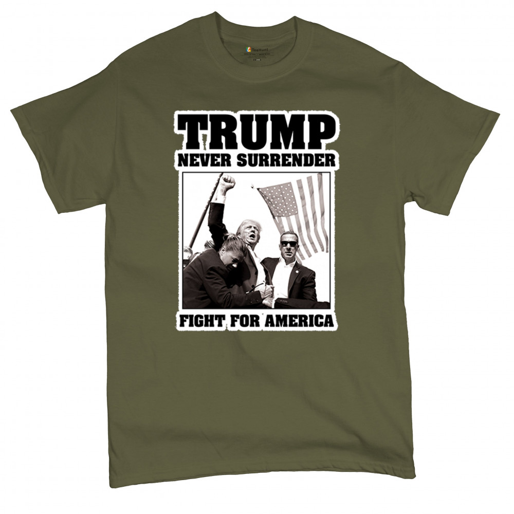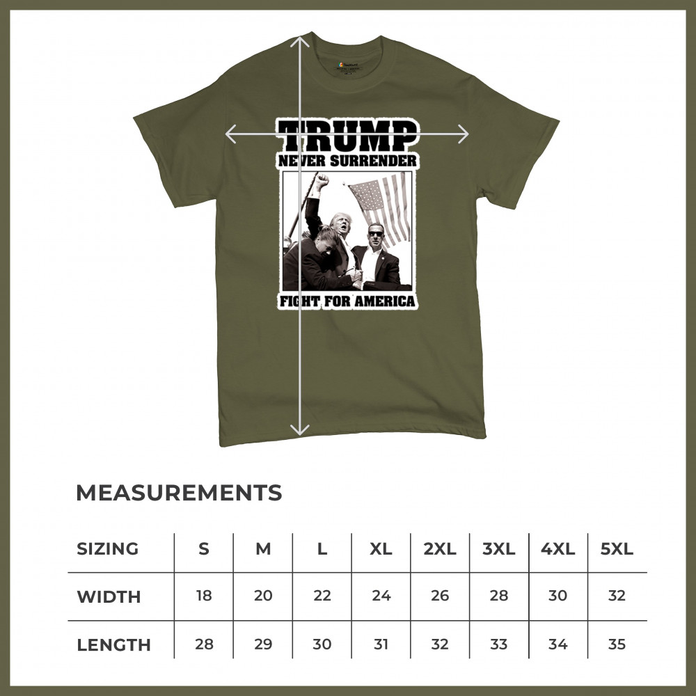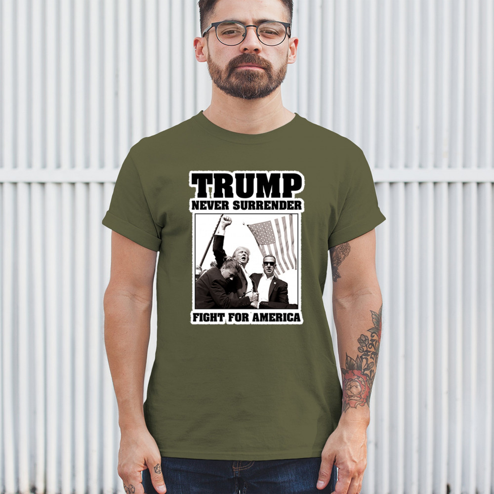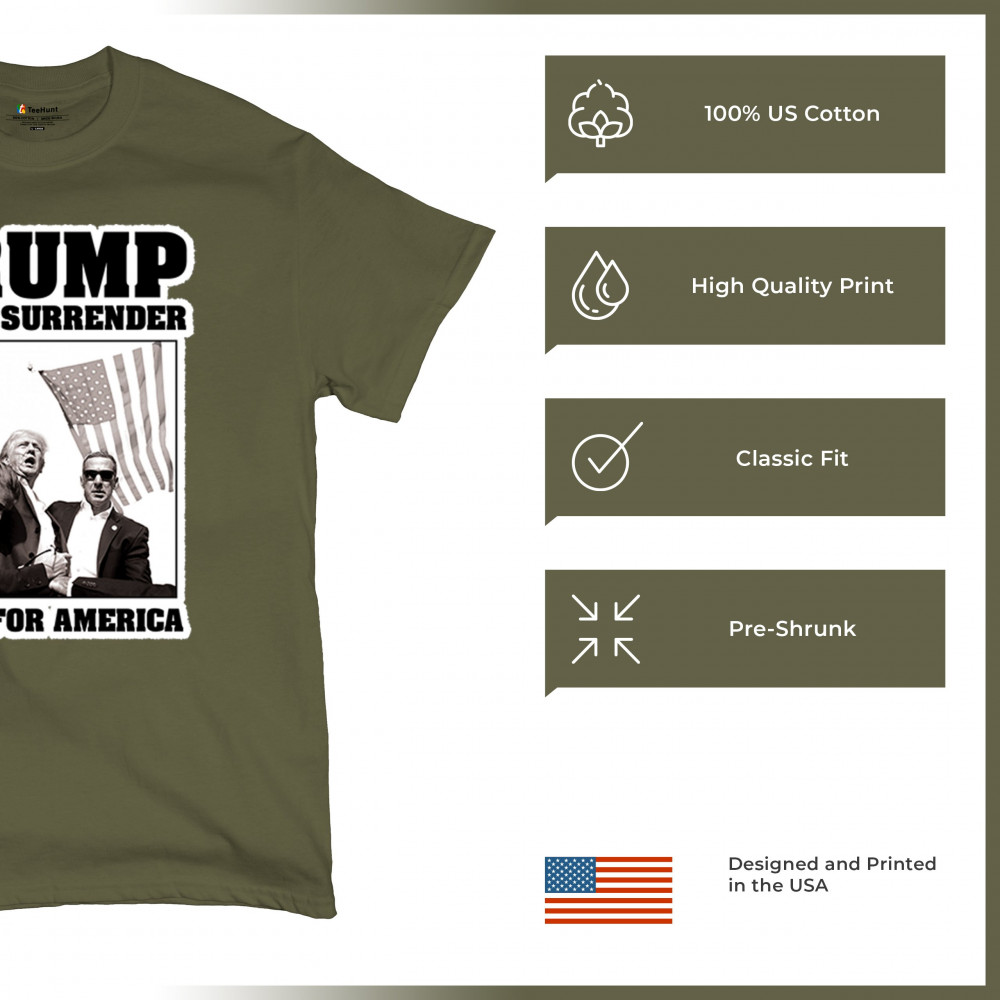 Express your unwavering support with the bold "Trump Never Surrender" design, perfect for rallies and everyday wear. Durable and stylish, show your patriotism proudly.