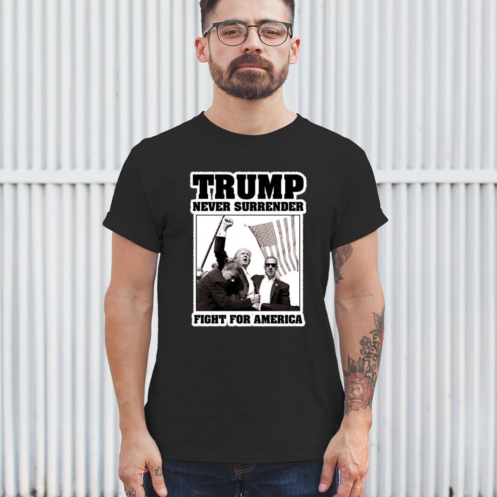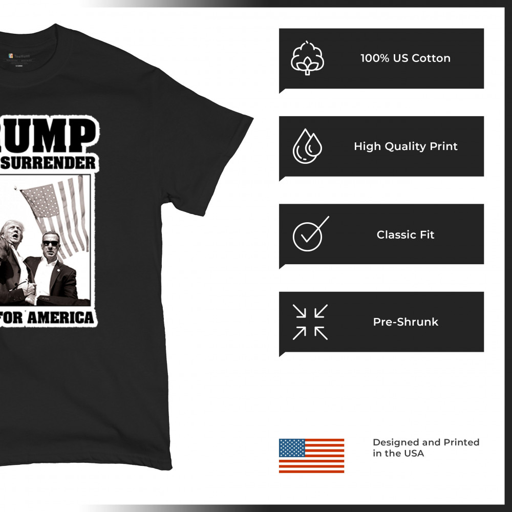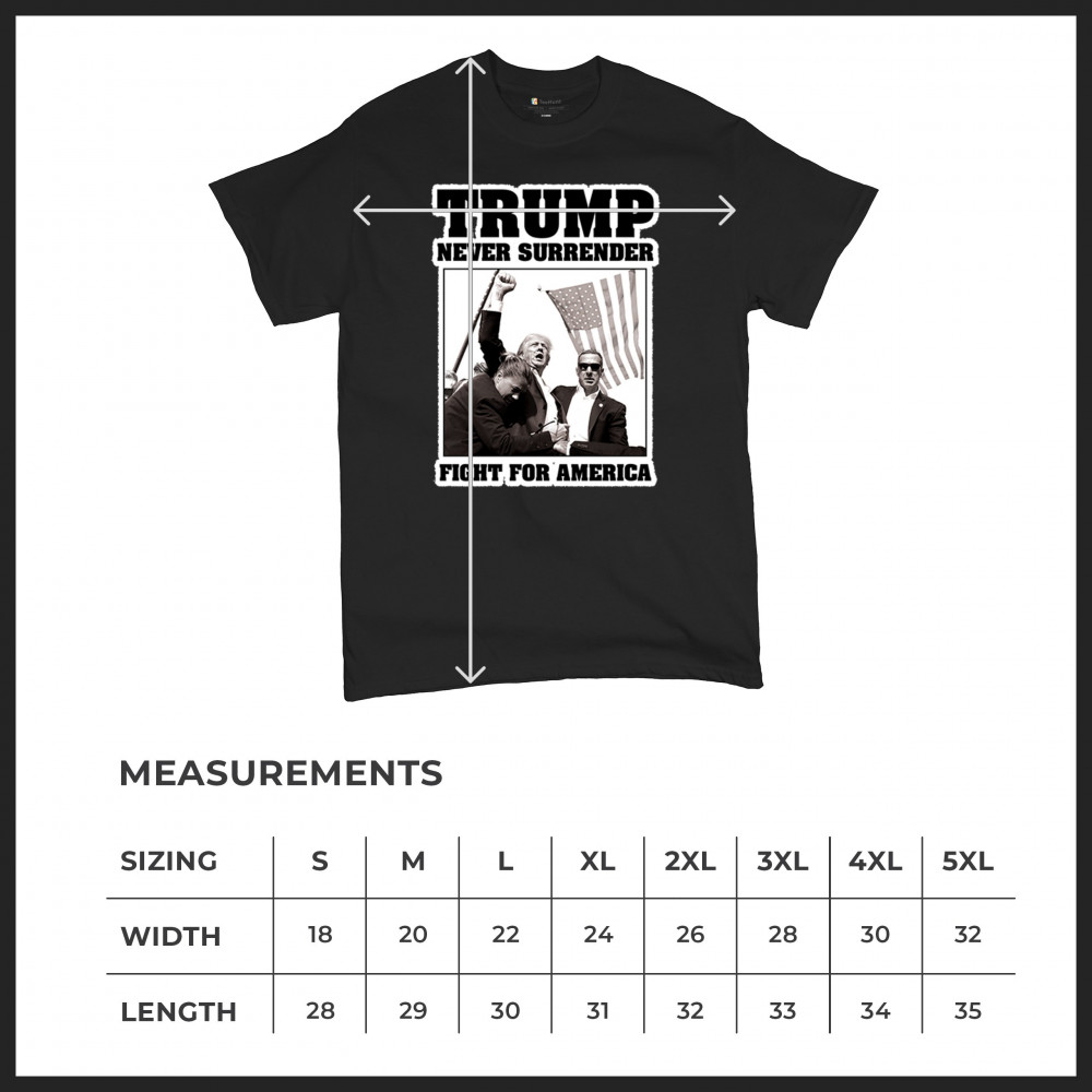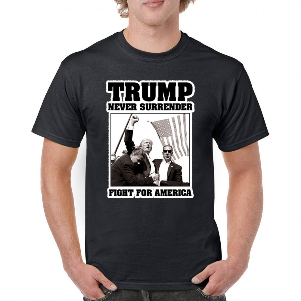 Express your unwavering support with the bold "Trump Never Surrender" design, perfect for rallies and everyday wear. Durable and stylish, show your patriotism proudly.