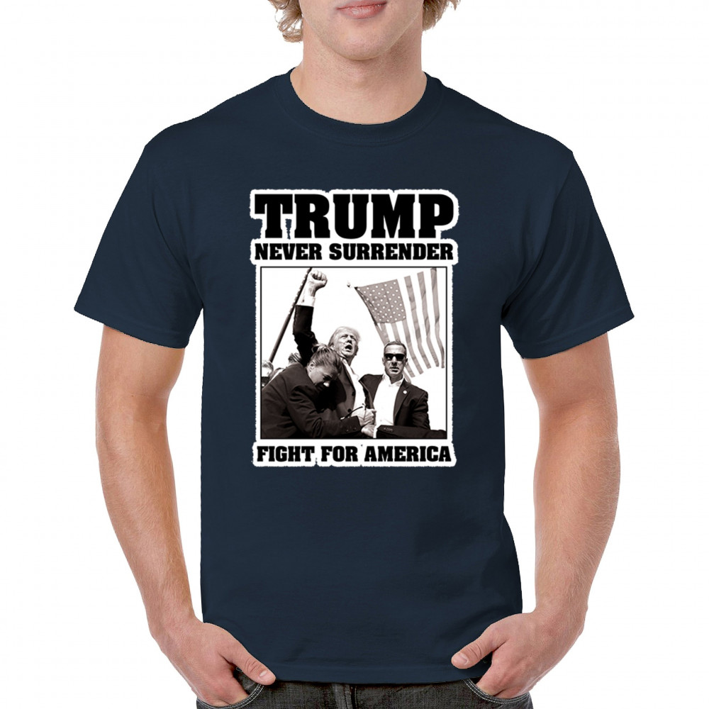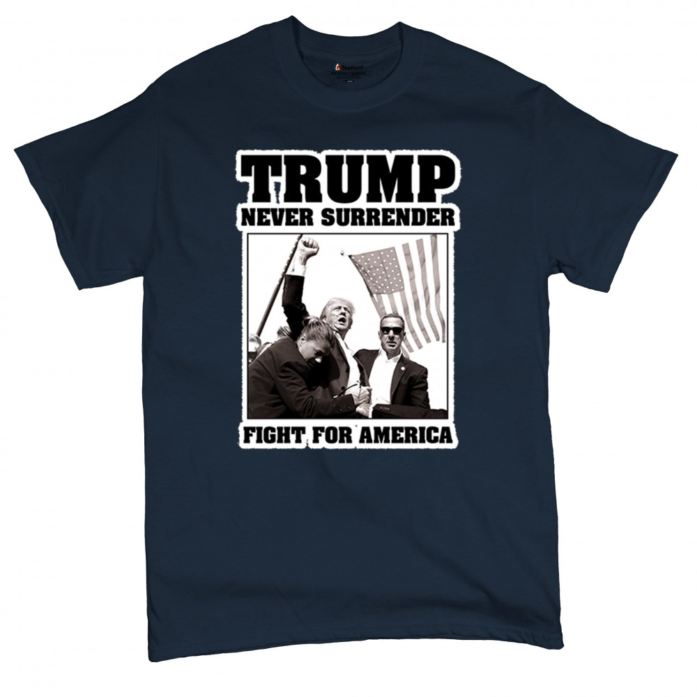 Express your unwavering support with the bold "Trump Never Surrender" design, perfect for rallies and everyday wear. Durable and stylish, show your patriotism proudly.