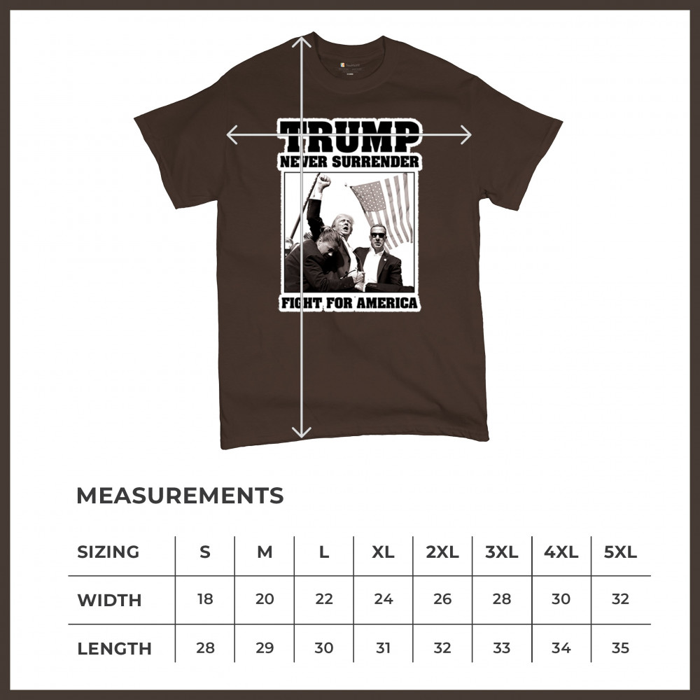 Express your unwavering support with the bold "Trump Never Surrender" design, perfect for rallies and everyday wear. Durable and stylish, show your patriotism proudly.