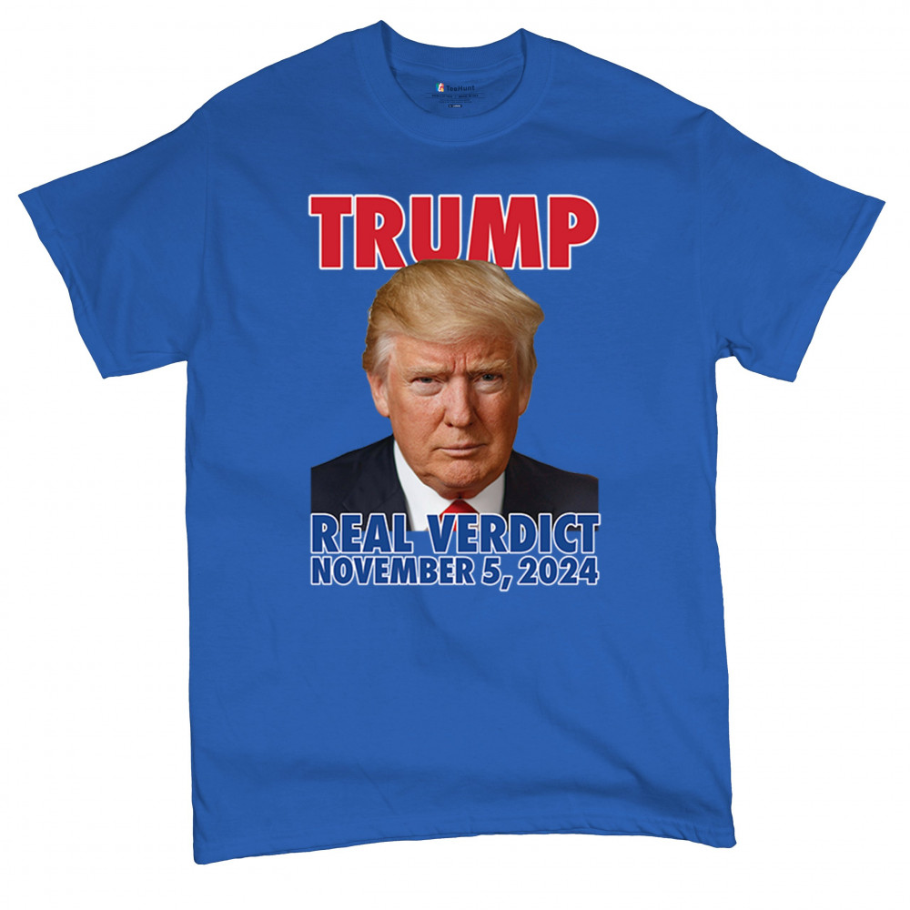 Show your support for Donald Trump with our bold "Real Verdict November 5, 2024" design. Perfect for Trump supporters, MAGA movement enthusiasts, and those who mock Biden with the "Let's Go Brandon" slogan.