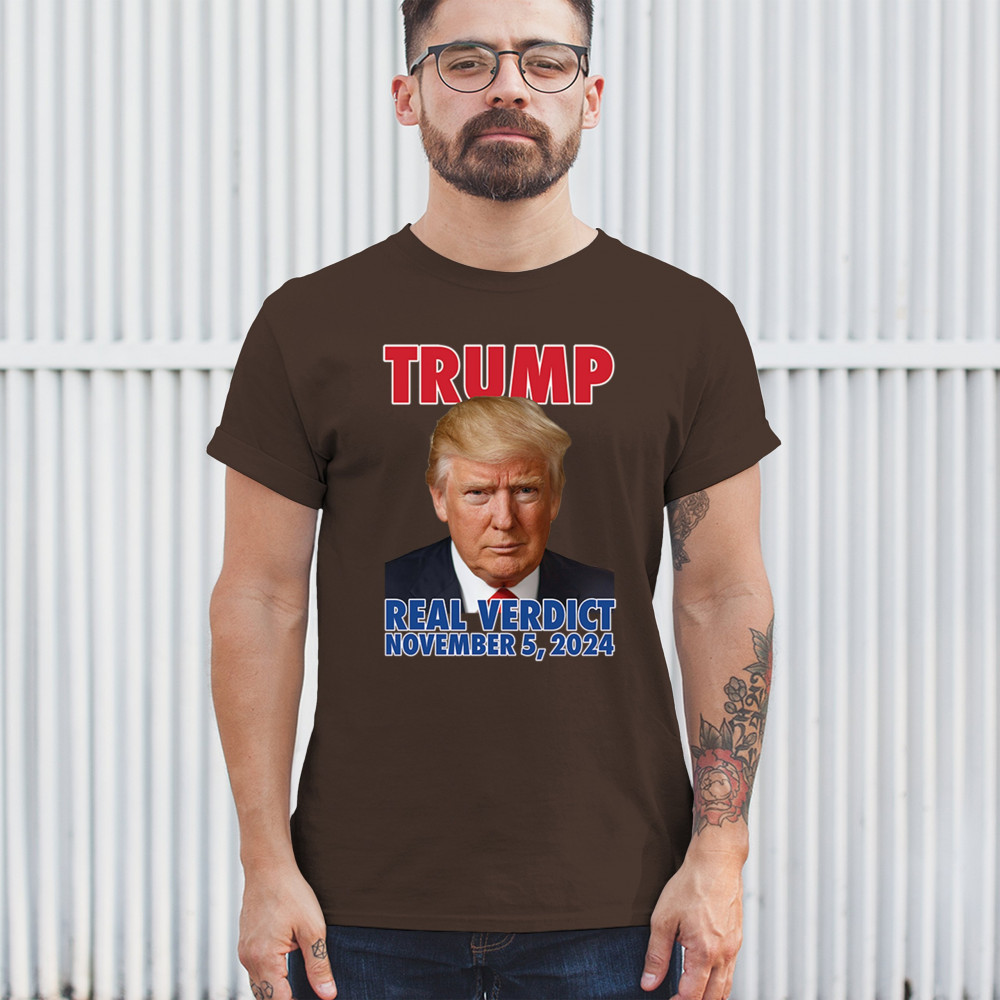 Show your support for Donald Trump with our bold "Real Verdict November 5, 2024" design. Perfect for Trump supporters, MAGA movement enthusiasts, and those who mock Biden with the "Let's Go Brandon" slogan.