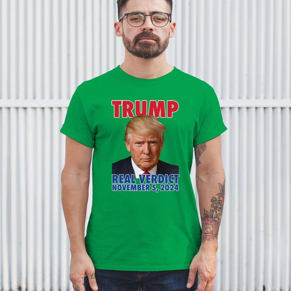 Show your support for Donald Trump with our bold "Real Verdict November 5, 2024" design. Perfect for Trump supporters, MAGA movement enthusiasts, and those who mock Biden with the "Let's Go Brandon" slogan.