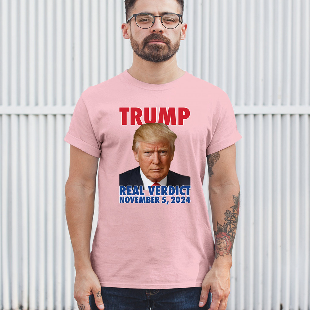 Show your support for Donald Trump with our bold "Real Verdict November 5, 2024" design. Perfect for Trump supporters, MAGA movement enthusiasts, and those who mock Biden with the "Let's Go Brandon" slogan.