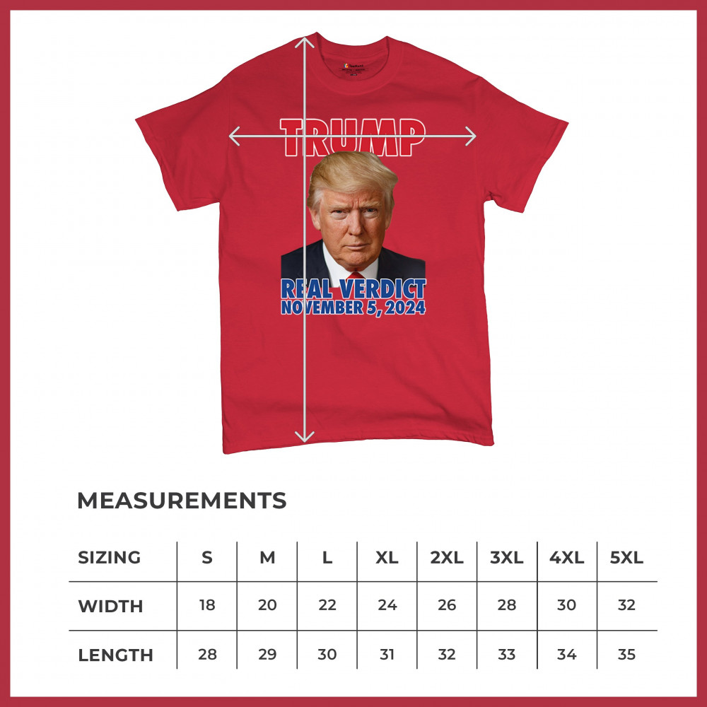 Show your support for Donald Trump with our bold "Real Verdict November 5, 2024" design. Perfect for Trump supporters, MAGA movement enthusiasts, and those who mock Biden with the "Let's Go Brandon" slogan.