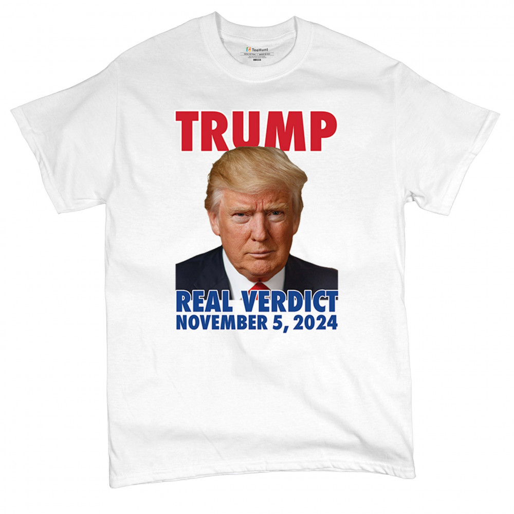 Show your support for Donald Trump with our bold "Real Verdict November 5, 2024" design. Perfect for Trump supporters, MAGA movement enthusiasts, and those who mock Biden with the "Let's Go Brandon" slogan.