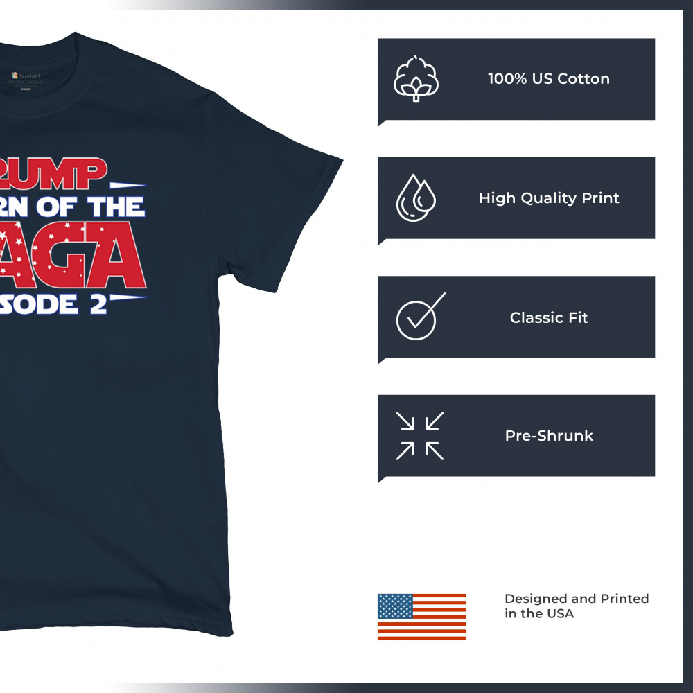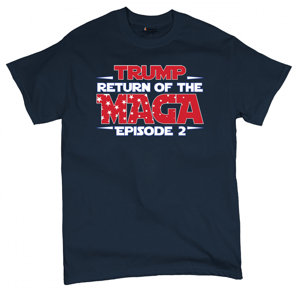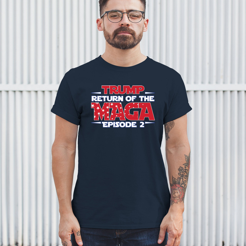 Join the "Return of the MAGA: Episode 2" movement. Celebrate Donald J. Trump, the Red Wave, and America First values with this bold design.
