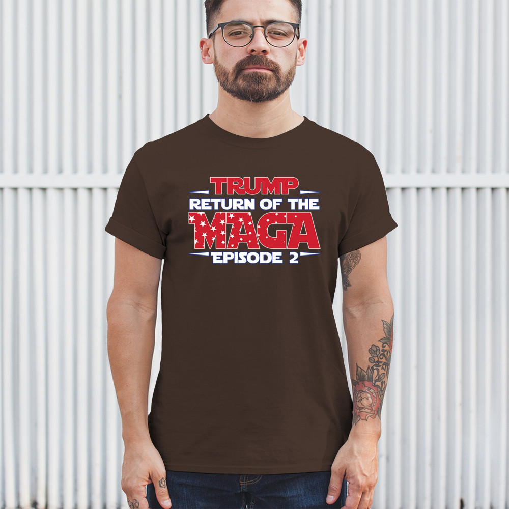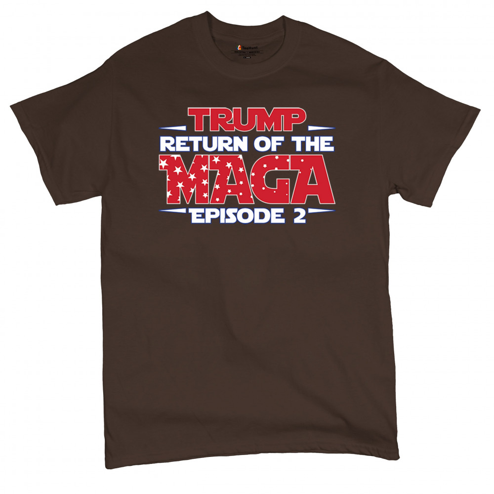 Make a bold statement with the "Return of the MAGA: Episode 2" design, celebrating Donald J. Trump and the Red Wave movement. Perfect for conservatives, Trump supporters, and Republicans who champion America First values, freedom, and the fight for a better future. A must-have for those who never surrender and stand for the people's mandate.