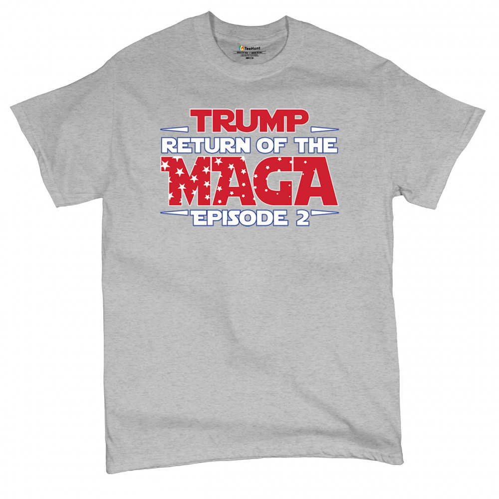 Join the "Return of the MAGA: Episode 2" movement. Celebrate Donald J. Trump, the Red Wave, and America First values with this bold design.