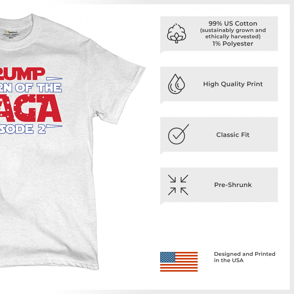 Join the "Return of the MAGA: Episode 2" movement. Celebrate Donald J. Trump, the Red Wave, and America First values with this bold design.