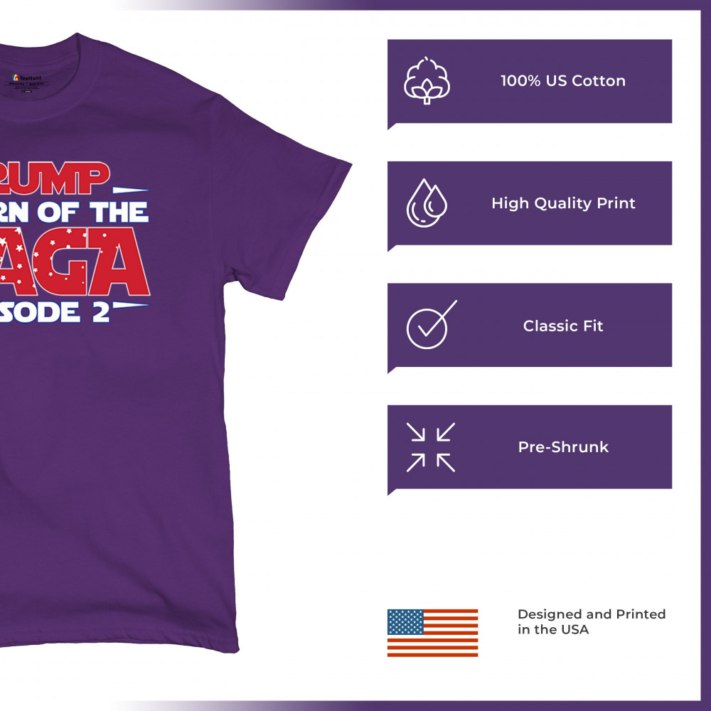 Make a bold statement with the "Return of the MAGA: Episode 2" design, celebrating Donald J. Trump and the Red Wave movement. Perfect for conservatives, Trump supporters, and Republicans who champion America First values, freedom, and the fight for a better future. A must-have for those who never surrender and stand for the people's mandate.